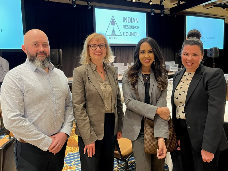 Les représentants de Pétrole et gaz des Indiens du Canada ont assisté à la conférence du Conseil des ressources indiennes qui a eu lieu à Calgary les 1er et 2 mars. De gauche à droite : Jeff Schatz, Olga Matsula, Cristi Adams, directrice générale par intérim et PDG, ainsi que Tanya Legere.